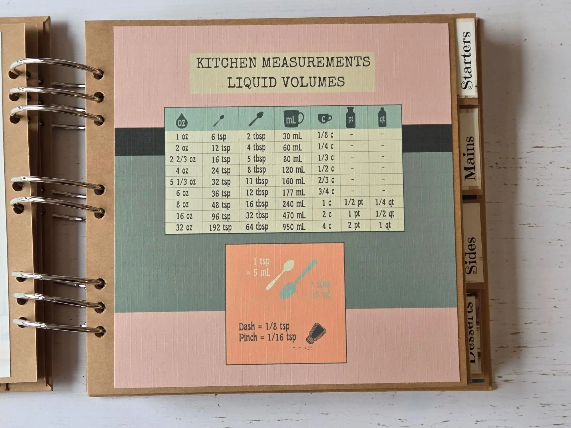 This handcrafted recipe book is thoughtfully designed to bring organization, creativity and meaningful memories into your kitchen. It features four divided sections to neatly categorize your favourite recipients, along with a convenient measurement guide for quick reference while cooking.